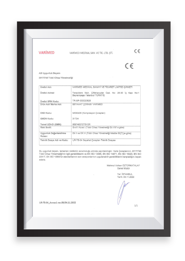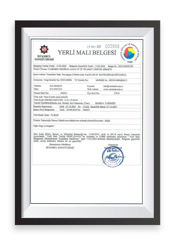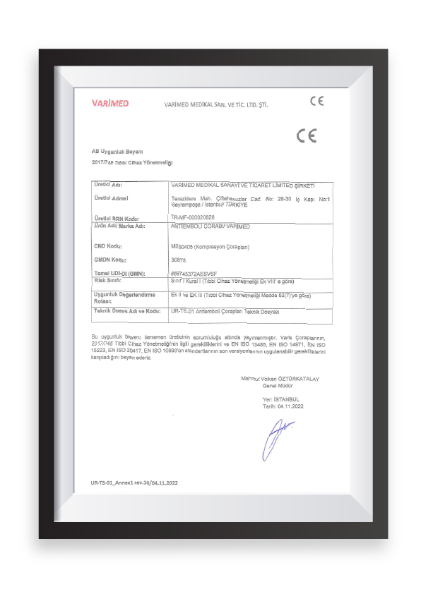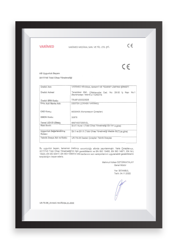 Varimed varis çoraplarında kullanılan mükemmel elastikiyete sahip çift kaplamalı iplik özelliklerinden dolayı elastikiyet ve esnekliklerini uzun süre koruma özelliğine sahiptir.
