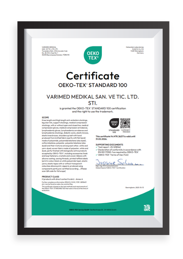 Varimed tarafından üretimde kullanılan iplikler, mükemmel elastikiyete sahip çift kaplamalı ipliklerdir. Bu iplikler Varis Çorapları, Anti Emboli Çorapları, Lenfödem Kollukları ve Elastik Destekler için özel olarak üretilmiş olup elastikiyet ve esnekliklerini uzun süre koruma özelliğine sahiptir. Böylelikle ürünlerin uzun ömürlü olması sağlanmaktadır.