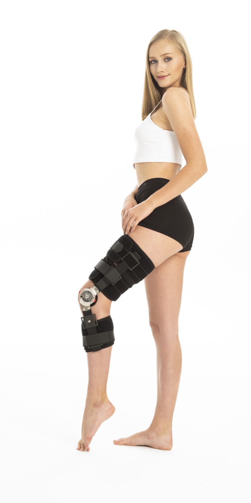 - Diz stabilitesine yardımcı çelik menteşeler ile dizi destekler ve açık patella tutuşu ile patella desteğini sağlar.